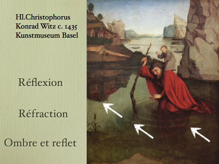 Benoit Kullmann Cycle de l'ombre I Renaissance et seconde mort de l'ombre dans la peinture occidentale ![]() Merci infiniment à Charles Gury des laboratoires Teva et à Fatima Daïka des laboratoires Sanofi de m'avoir pour la seconde fois permis de m'adresser à vous dans le cadre prestigieux d'une réunion organisée par la société franco-espagnole de Neurologie et l'ANLLF. Cette fois-ci en l'absence de Pierre Lemarquis, qui ne peut malheureusement être présent à Séville. Je voudrais également témoigner ma reconnaissance à Gilles Lavergnes. Le sujet annoncé est "l'ombre au tableau". L'expression l'ombre au tableau signifie que quelque chose ne va pas, la traduction anglaise est there's a fly in the ointment. Une mouche dans la crême. Un détail qui gâche tout. En espagnol, j'ai appris hier soir qu'il existait une expression équivalente à notre "quelque chose ne cadre pas". La mouche que vous voyez ici était un témoignage du génie d'un artiste, de la fin du XVème à celle du XVIIème siècles : une mouche posée que l'on croyait vraie jusqu'à ce qu'on se lasse d'attendre qu'elle s'en aille. Ainsi Vasari nous raconte-t-il la légende de Giotto : ce petit berger qui traçait la forme de ses moutons sur le sol avec son bâton avait été remarqué par Cimabue, et devint son apprenti. Un jour que Cimabue était absent, Giotto avait espièglement dessiné une mouche sur un panneau en cours de réalisation ; en rentrant Cimabue après avoir tenté de chasser l'insecte se rendit compte du génie de son élève. Mais il eût fallu pour que l'histoire ne fut pas une simple légende, que la mouche possédât de quoi la faire paraître en relief, détachée du plan du tableau : une ombre. Était-ce seulement possible, au temps de Giotto ? En fait il nous faut distinguer deux sortes d'ombres. ![]() ![]() J'aurais pu partir des écrits de Léonard de Vinci, mais ce dernier s'il a largement traité des ombres propres, déclare malvenue les ombres portées. Semblable à ses collègues chinois, pour lesquels les ombres portées n'ont aucun sens du point de vue pictural. Nous verrons plus loin que cette règle souffre une exception, au moins. ![]() Voici une photographie des arènes de Séville, cité associée s'il en fut à la lumière, à l'éblouissement. Un matador affronte son ombre, ombre portée, phénomène physique, première anamorphose que nous expérimentons dès l'enfance. (pour la définition de l'anamorphose : déformation réversible d'une image par un système optique, voici la plus connue : les Ambassadeurs d'Holbein, 1533). ![]() ![]() ![]() ![]() ![]() L'intitulé de la première partie est Apparition et Disparition de l'ombre portée dans la peinture occidentale. L'an passé à Vienne nous avions parlé de la vie et de la mort d'un motif, l'arc-en-ciel, dans le même champ pictural. Voici une mosaïque antérieure à la période que je vais évoquer : un sol jonché de détritus au décours d'un banquet, qui s'est déroulé vers le deuxième siècle avant notre ère. Chaque objet, dans un souci de réalisme, de trompe l'oeil, est associé à son ombre portée. Cette technique a complètement disparu, et je vais vous raconter comment, au début de XVème siècle, l'ombre portée a été redécouverte, réinventée pourrait-on dire. ![]() ![]() Soit un tableau de Giotto. Pourquoi Giotto ? C'est un peintre majeur, virtuose de l'utilisation des ombres propres. Pour les modelés des visages, les plis des vêtements, les reliefs de la roche. Mais scrutez le panneau sous tous les angles, vous n'y trouverez aucune ombre portée. Giotto connaît Dante, il en dresse même le portrait. Dante, à chaque pas, lors de sa traversée des enfers, rencontre des ombres. ![]() Les historiens de l'art qui se sont penchés sur la question de la représentation de l'ombre, Gombrich et Stoïchita, s'accordent sur des interprétations du type : Giotto ne représente pas les ombres parce qu'il distingue les corps physiques des images virtuelles. En quelque sorte il marquerait la différence en omettant l'ombre portée. C'est préter beaucoup d'intentions métaphysiques à Giotto, en un temps où tout simplement l'ombre portée n'était pas un motif pictural, ni un élément utile : les ombres propres donnent du relief aux visages, aux vêtements, aux roches. Mais il n'est pas alors d'usage de se préoccuper de soutenir une perspective à l'aide de l'ombre portée, pour la bonne raison que la perspective n'est pas une préoccupation chez les peintres avant le début du siècle suivant. Cette remarque vaut pour la peinture chinoise, qui n'a cure de la perspective. ![]() Considérons deux oeuvres qu'un siècle et demi sépare, et qui abordent le même sujet : la fuite en Egypte. À gauche, la version de Giotto : ombres propres comme sur le travail précédent, mais aucune ombre portée de Marie, de Joseph ; à droite, celle de Giovanni di Paolo : voyons de plus près : question virtuosité, je donne tous les Giovanni di Paolo pour un Giotto. ![]() ![]() Robert Campin peint cette Annonciation, exposée aux Musées royaux de Bruxelles, vers 1420. La perspective est très approximative. Les objets sur la table n'ont pas d'ombre portée. Ni le chandelier en haut à droite. ![]() ![]() Huit ans plus tard, le même sujet est traité, le Retable de Mérode, exposé au Metropolitan. La perspective est toujours aussi curieuse, mais la crémaillère du chaudron de cuivre, ou le chandelier, ont récupéré une ombre portée. Peut-être est-ce dû au nouvel assistant de Robert Campin. ![]() ![]() ![]() Je vous montre une oeuvre de Konrad Witz, un peintre souabe qui s'est installé à Bâle. Un vrai traité des divers modes de propagation de la lumière, en 1435 : voyez le reflet de l'île, la réfraction qui affecte le bâton de Saint Christophe ; quand à l'ombre du saint, elle est en fait ombre et reflet, une problématique que nous reverrons plus loin. Cette Adoration des mages de Konrad Witz, réali