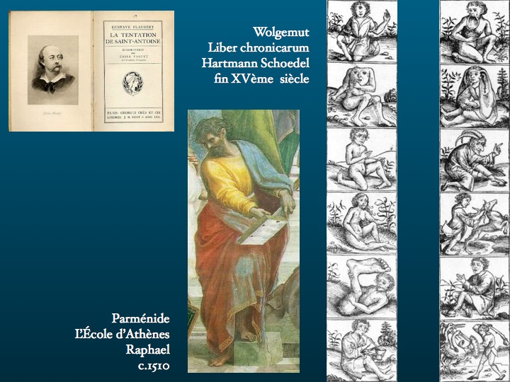 Lost in Temptations À la recherche des Tentations perdues de Saint Antoine Amsterdam, le 22.X.2011 ![]() ![]() Permettez moi de remercier le laboratoire Teva d'organiser cette réunion d'Agirsep, à laquelle je suis à la fois très honoré et heureux de participer. Une fois de plus, je dois d'être ici à la confiance de Charles Gury, que je remercie tout particulièrement, d'autant plus que sa commande est l'occasion pour moi de revisiter un chantier déjà engagé il y a plus de quatre ans, et qu'a subi Pierre Labauge, consacré aux rapports d'un écrivain archiconnu, Gustave Flaubert, et d'un philosophe que l'histoire a franchement oublié, Hippolyte Taine. ![]() Lost in temptations : il y a plusieurs raisons à ce titre. La première est une constatation : confrontés à une oeuvre telle qu'une Tentation de Saint Antoine, nous sommes dans l'impossibilité d'interpréter ce que le peintre a voulu représenter. En fait nous supposons une intention chez le peintre, comme nous supposons que l'on ne gravait pas des hyéroglyphes par hasard. Seulement il nous manque la clef. ![]() ![]() Des Tentations de Saint Antoine, il en existe des centaines ; c'est un sujet qui a été traité dans les pays de Nord plus qu'ailleurs, essentiellement à la fin du quinzième et au seizième siècles, témoignant de ce que nous appellerions peut-être un peu vite d'une imagination débridée ; puis le thème s'est banalisé et a perdu de sa puissance imaginative au dix-septième siècle, enfin il est devenu désuet, et s'il a été repris par quelques très grands noms de la peinture, je pense à Lovis Corinth, à Cézanne, à Max Ernt, à Dali, ce serait, en introduisant à nouveau un doute, à titre de vestige, de citation. ![]() J'achève mon préambule sur un constat : la peinture, jusqu'à la renaissance et parfois bien après, est une mise en image d'un texte. Peut être certains d'entre vous se rappellent -ils l'ombre au tableau : elle appararaît au cours du XVe siècle, à l'occasion de l'illustration d'un texte particulier où l'ombre tient un rôle explicite. Il en va de même ici : la vie de Saint Antoine est décrite par Saint Anastase, et reprise par Jacques de Voragine dans la légende dorée ; puis lors de la création au XIe siècle de l'ordre des Antonins. La base de la représentation de Saint Antoine est fondée sur un corpus étroit de textes, influencé considérablement par d'autres thèmes qui tournent tous au XVe et au XVIe siècles autour de la lutte du bien et du mal, de l'église et des hérésies : l'incarnation du mal revêt les multiples formes des démons que je vous montre ici s'attaquant à Saint Antoine. Une autre thématique majeure est celle de la folie, et de la maison des fous, qui est dans les pays du Nord en cette période trouble un frêle esquif, la nef des fous ; voyez ce personnage qui porte une harpe impossible, et dont le crâne sert de support à un nid d'oiseaux - une expression des pays du Nord équivalente de notre araignée dans le plafond. Toutes ces images illustrent un texte très répandu alors, das Narrenschiff. ![]() ![]() ![]() ![]() ![]() ![]() La première oeuvre que je vous commente est l'une des dernières Tentations de l'époque florissante, celle de Joos van Craesbeeck (c. 1605/06– c. 1660) élève d’Adrian Brouwer. Pourquoi l'avoir choisie ? Saint Antoine n'est plus le sujet principal du tableau : certes le saint homme est repérable sur la droite, avec un A brodé sur son vêtement qui dit déjà la perte du sens - vous comprendrez plus tard - accompagné de sa truie à laquelle on manque de respect, ce que l'on ne se serait jamais permis de faire pendant les deux siècles précédents ; et d'un grouillement de personnages chimériques, montés à l'envers, dont vous reconnaissez les sources boschiennes. ![]() ![]() ![]() ![]() Le gros poisson est un invité habitué de Brueghel. Mais l'essentiel de l'attention du spectateur est captée par cette tête énorme, celle de Craesbeeck lui-même, qui supporte tout l'équilibre de l'oeuvre. Parce qu'elle est la première version qui ouvre littéralement la tête de l'artiste occupant l'essentiel de l'espace du tableau. Le crâne entre autres personnages contient un peintre et son modèle : un atelier intra-crânien, qui place la créativité du côté du lobe frontal sans la moindre intention localisationniste, ni l'ombre d'une considération anticipée pour les théories de Bruce Miller. Sur la tête est niché un couple de coucous. Une façon de dire : ce personnage est cinglé. Que penser alors de ce qu'il met en scène ? Une nuée d'oiseaux volète à l'arrière plan. On sait que Platon comparait les souvenirs à des oiseaux prisonniers d'une volière. Autrefois on n'ouvrait pas la tête des artistes, mais on faisait comprendre que certains personnages travaillaient du chapeau : voici deux monstres réduits à une tête munie de quatre membres, dont le couvre-chef est un chapiteau. ![]() Nous constatons une floraison de représentations, dont nous supposons qu'elles ont un sens. Je vous propose de nous laisser guider par un écrivain des plus célèbres du XIXe siècle, Gustave Flaubert, fasciné par le thème de la tentation de Saint Antoine au point d'en écrire trois versions. Déjà adolescent, et quarante ans avant Rimbaud (une saison en enfer date de 1873), il est fasciné par l'enfer. En 1835, âgé de 14 ans, il écrit Voyage en enfer, deux ans plus tard en 1837, Rêve d'enfer, et l'année suivante, La Danse des morts, puis en 1839 un texte mystérieux intitulé Smarh, ébauche de la tentation de Saint Antoine. Vous savez certainement qu'en outre, il était épileptique, nonobstant le diagnostic partisan de Jean-Paul Sartre, convaincu qu'il s'agissait d'une névrose : des crises si l'on suit les autorités des professeurs Gastaud et Jallon occipitales, avec des hallucinations visuelles, et généralisation secondaire. On lui suppose une malformation vasculaire occipitale, ou un